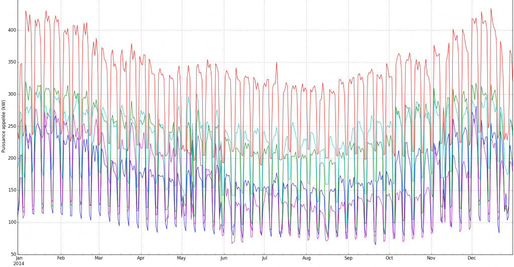 Courbes de consommation d’électricité d’un groupe, ne comportant que des cités administratives.